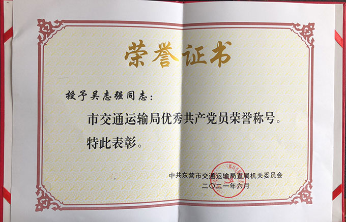 • 吳志強(qiáng)榮獲”市交通運(yùn)輸局優(yōu)秀共產(chǎn)黨員“榮...